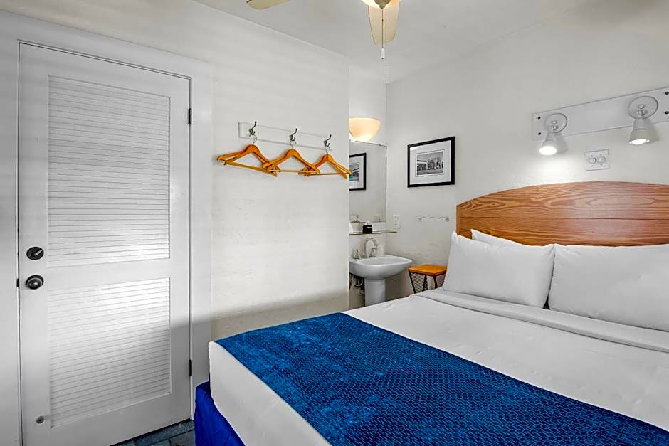 This room includes a desk, private bathroom, and 1 Queen Bed.